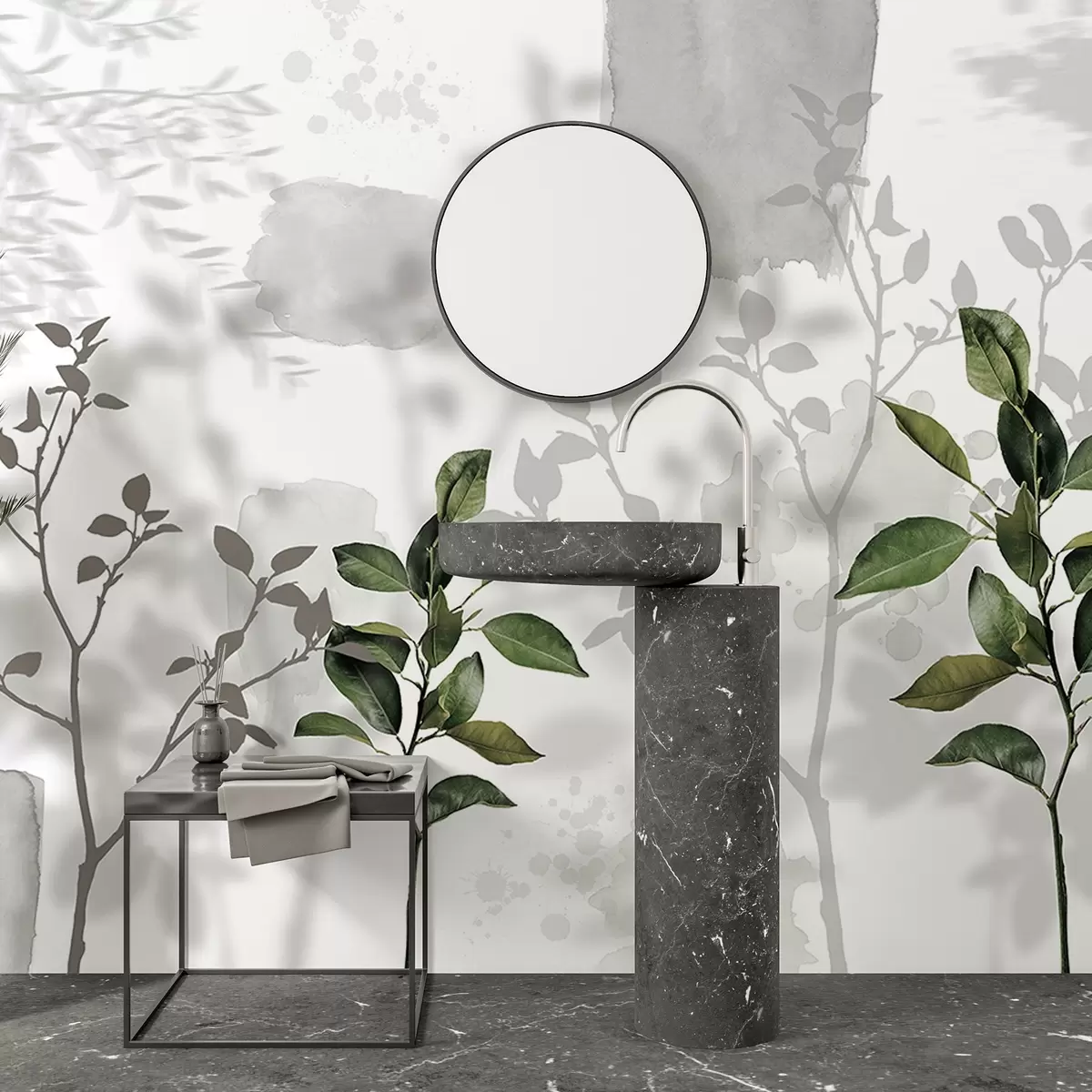 Fototapety Listy citrónovníka, tiene vetiev stromov, príroda, akvarel, zelená Nr. w03910v1