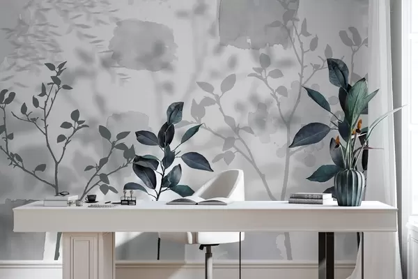 Fototapety Listy citrónovníka, tiene vetiev stromov, príroda, akvarel, modrá Nr. w03910v2