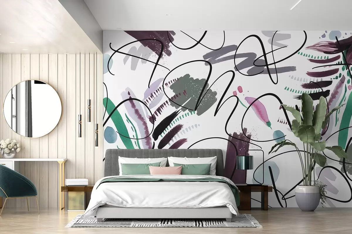 Fototapety Atramentové písmená, kaligrafia, ťahy štetcom, pastelové farby, abstrakcia Nr. w03912v1