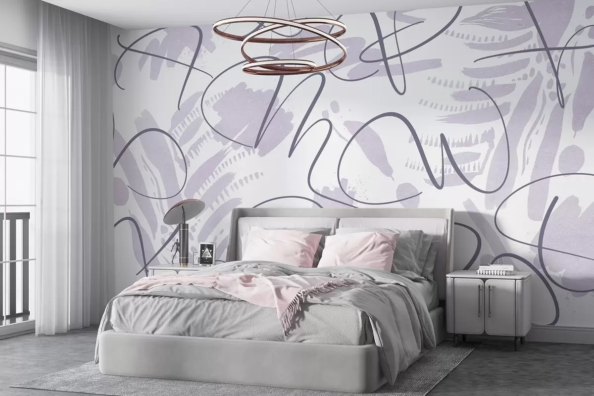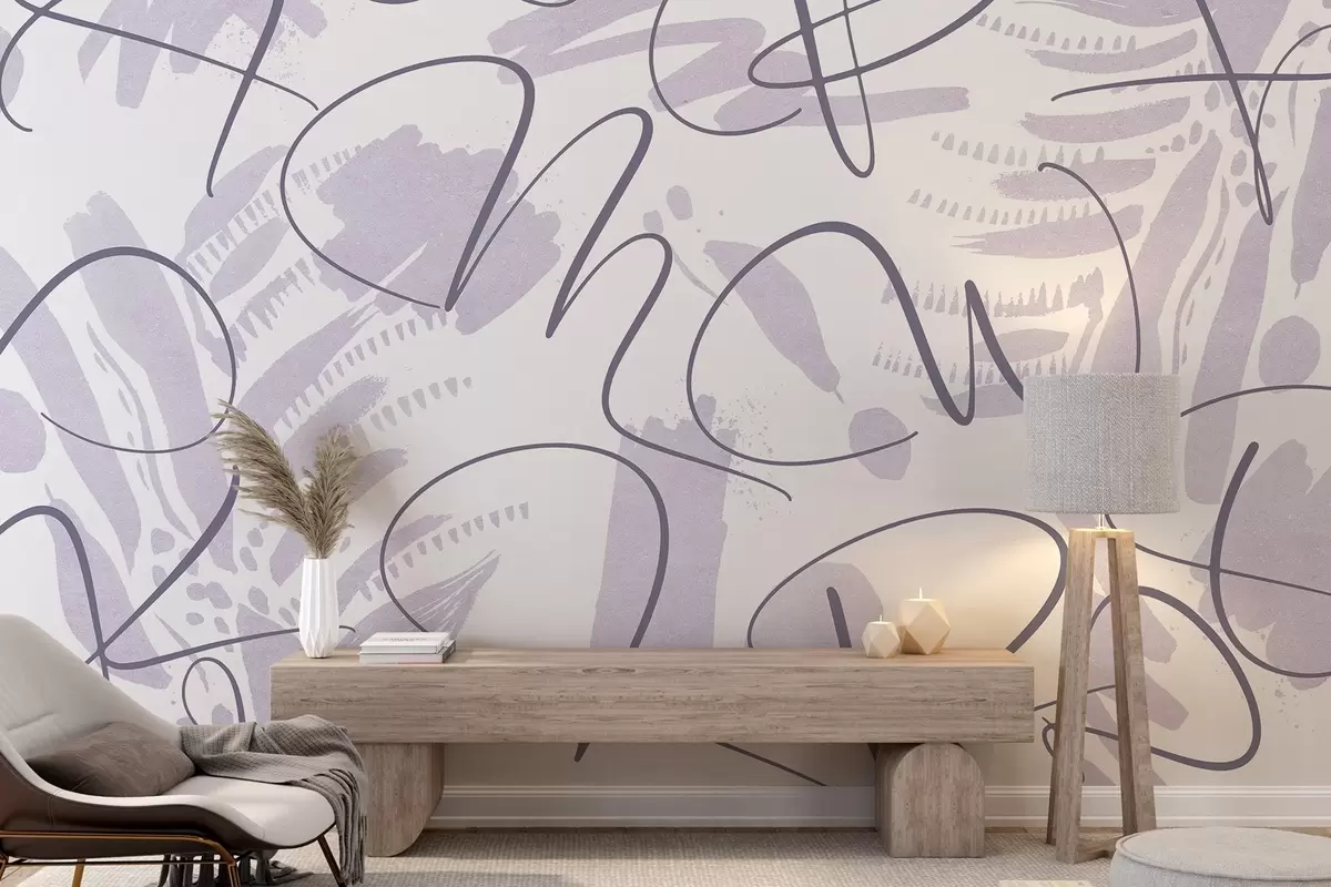 Fototapety Kaligrafická abstrakcia s písmenami, ťahy štetca, fialová farba Nr. w03913v2