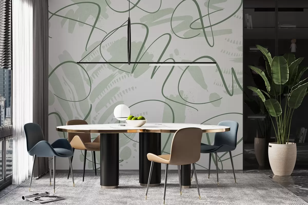 Fototapety Kaligrafická abstrakcia s písmenami, ťahy štetca, zelená farba Nr. w03913v3
