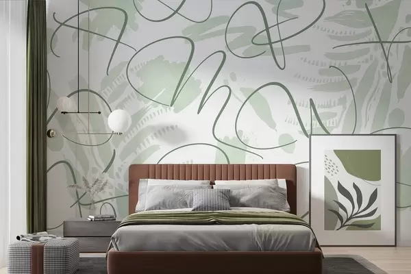 Fototapety Kaligrafická abstrakcia s písmenami, ťahy štetca, zelená farba Nr. w03913v3