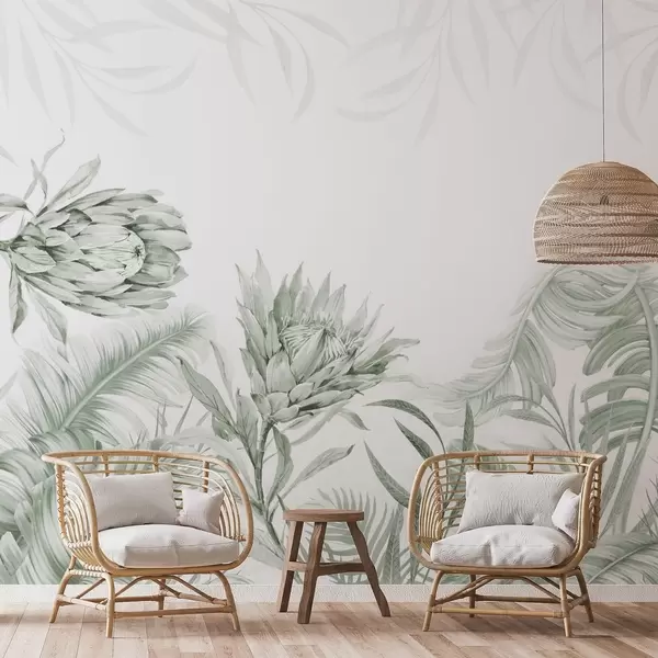 Fototapety Protea medzi tropickými listami, modré odtiene Nr. w03952v3