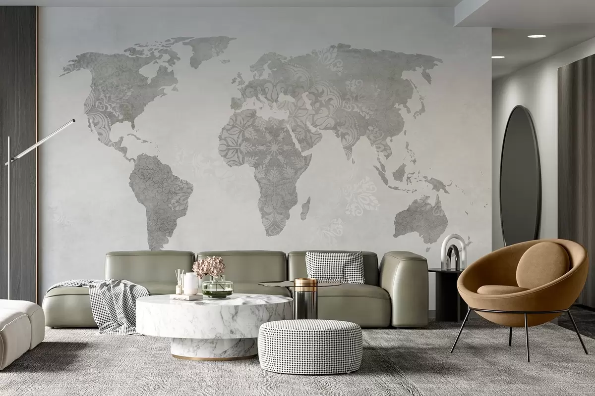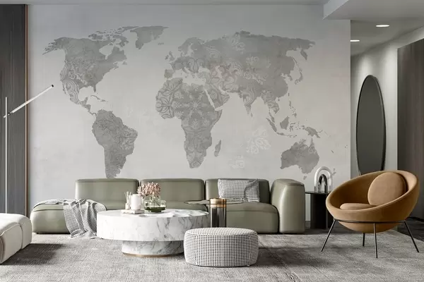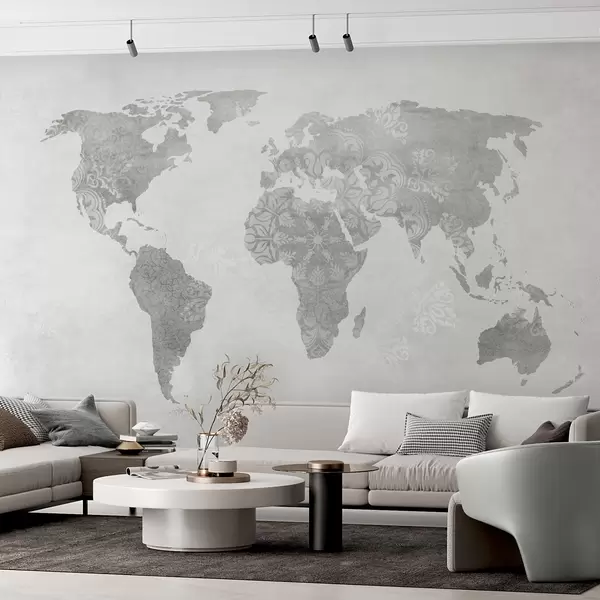 Fototapety Mapa sveta so vzorom, jednofarebné odtiene Nr. w03954v1