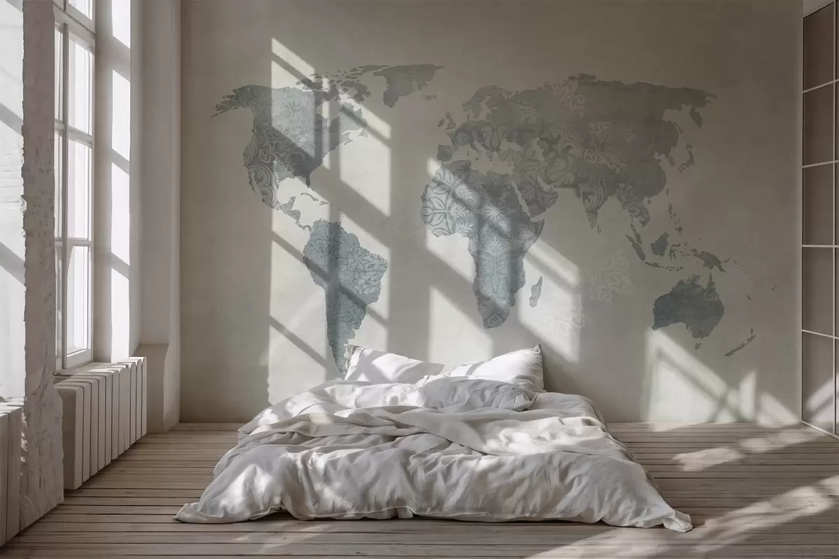 Fototapety Mapa sveta so vzorom, modré odtiene Nr. w03954v2