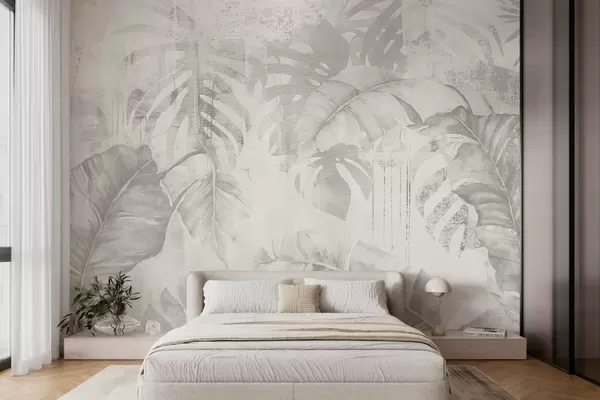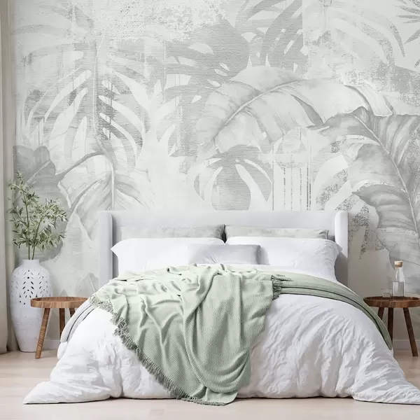 Fototapety Tropické listy v štýle grunge, jednofarebné odtiene Nr. w03956v1