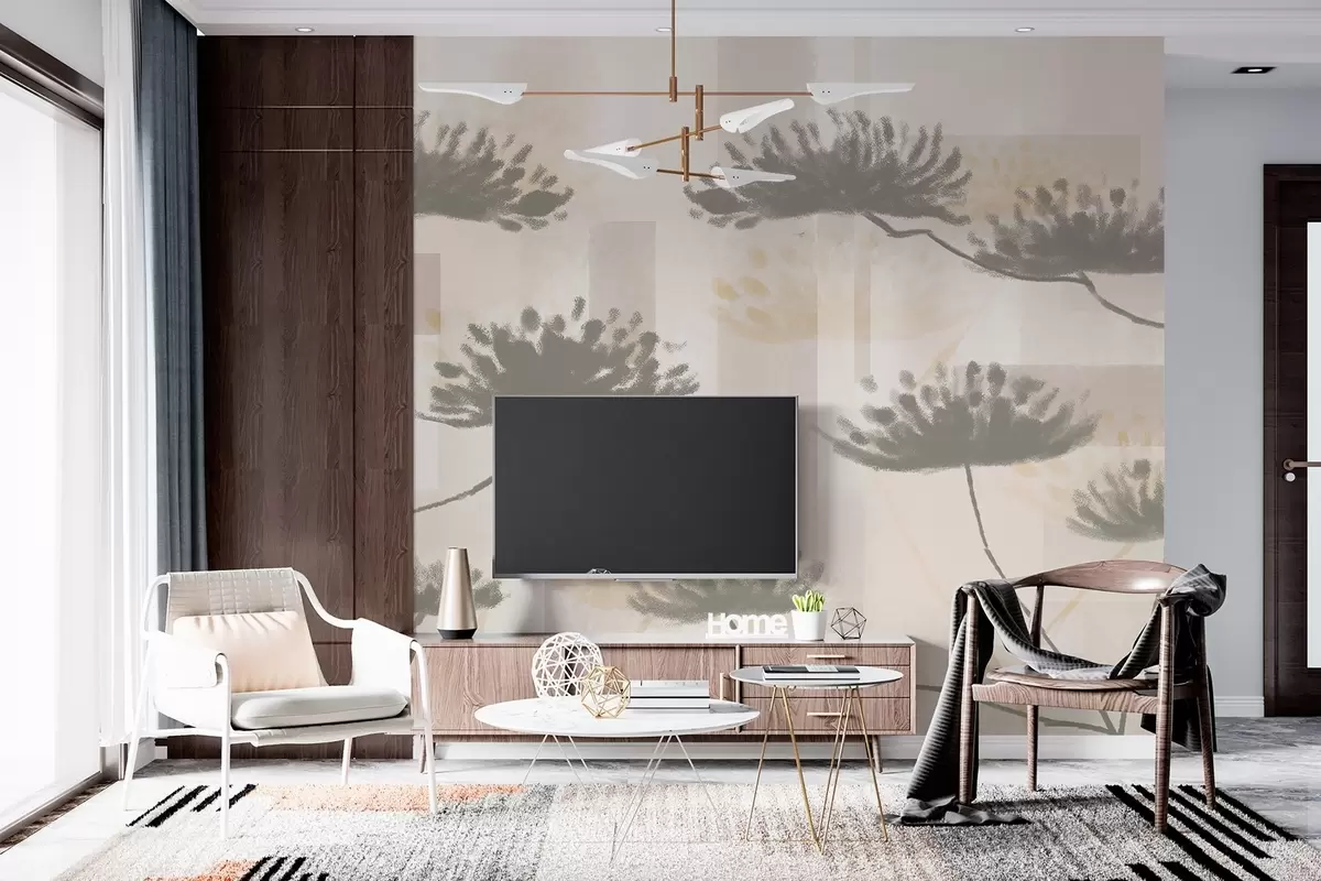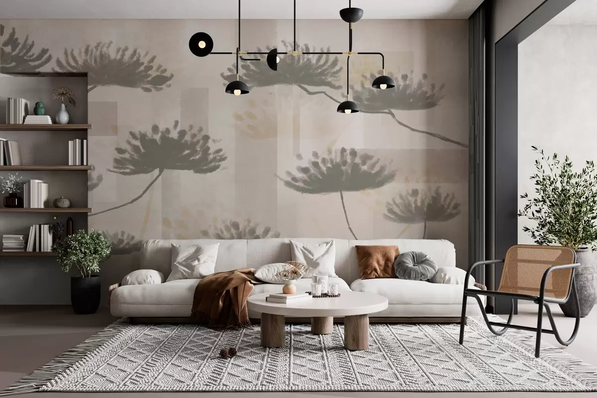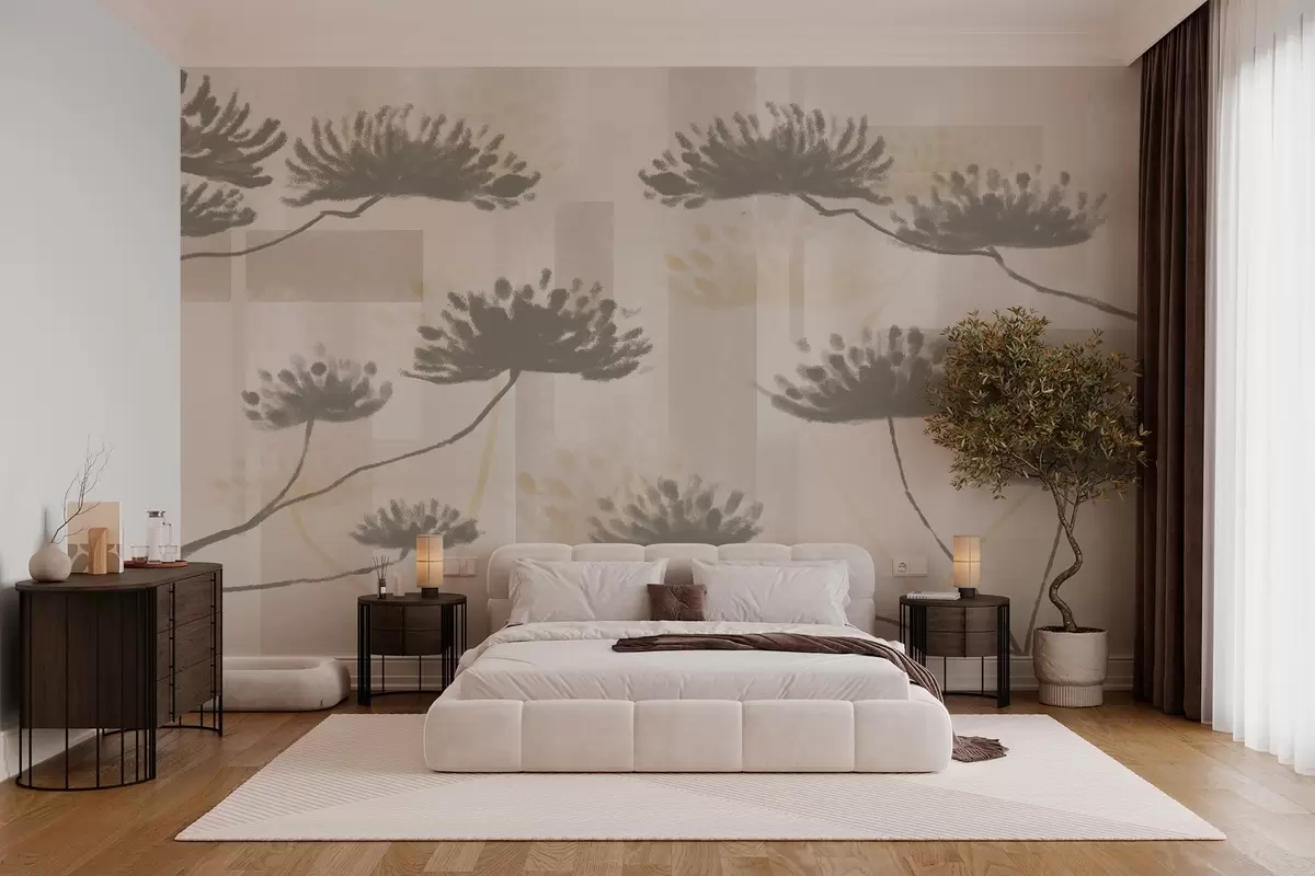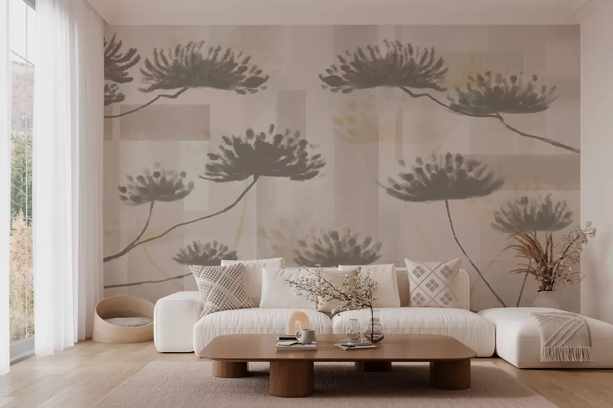 Fototapety textúrovaná geometria v béžových a krémových tónoch so štylizovanými kvetmi dáždnikov Nr. w03960