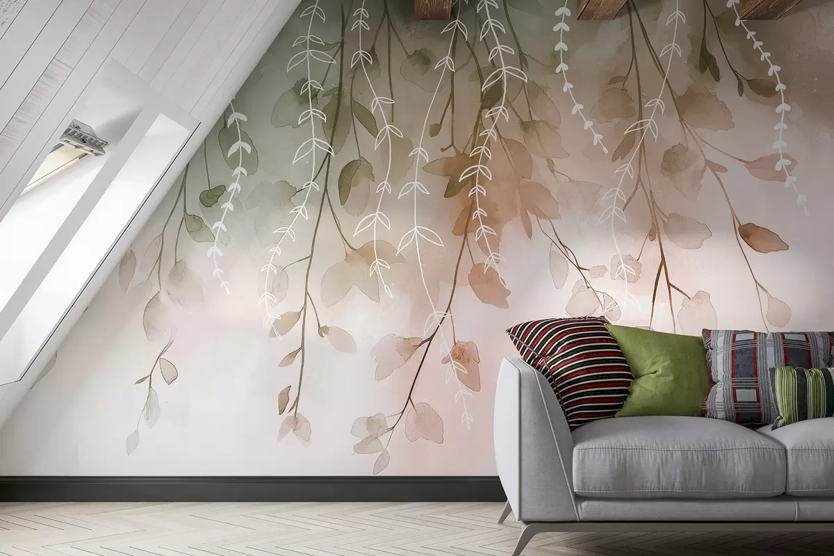 Fototapety Vetvy s listami v akvarelovom štýle, prírodné jesenné farby Nr. w04007v1