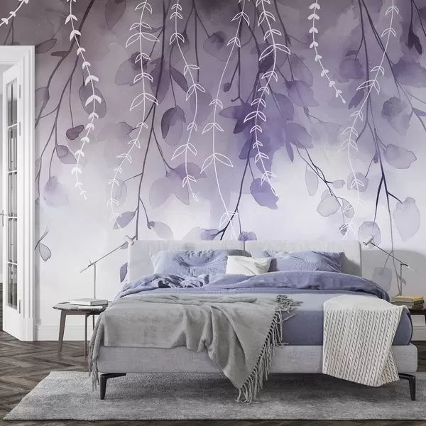 Fototapety Vetvy s listami v akvarelovom štýle, prírodné fialové farby Nr. w04007v2