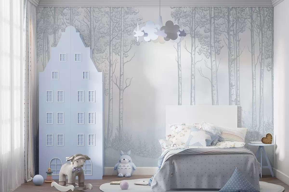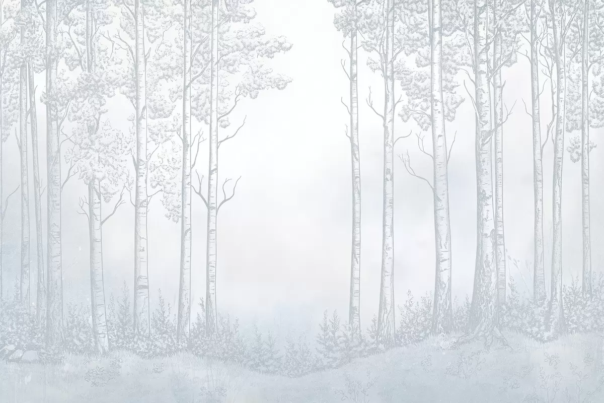 Fototapety Les s brezami, minimalizmus, príroda, modrá paleta farieb Nr. w04009