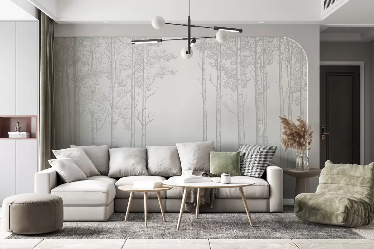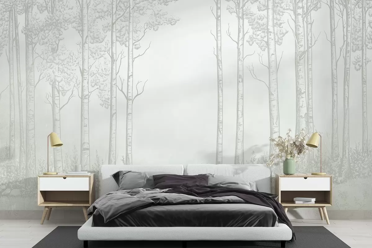 Fototapety Les s brezami, minimalizmus, príroda, zelená paleta farieb Nr. w04009v1