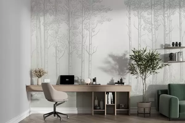 Fototapety Les s brezami, minimalizmus, príroda, zelená paleta farieb Nr. w04009v1