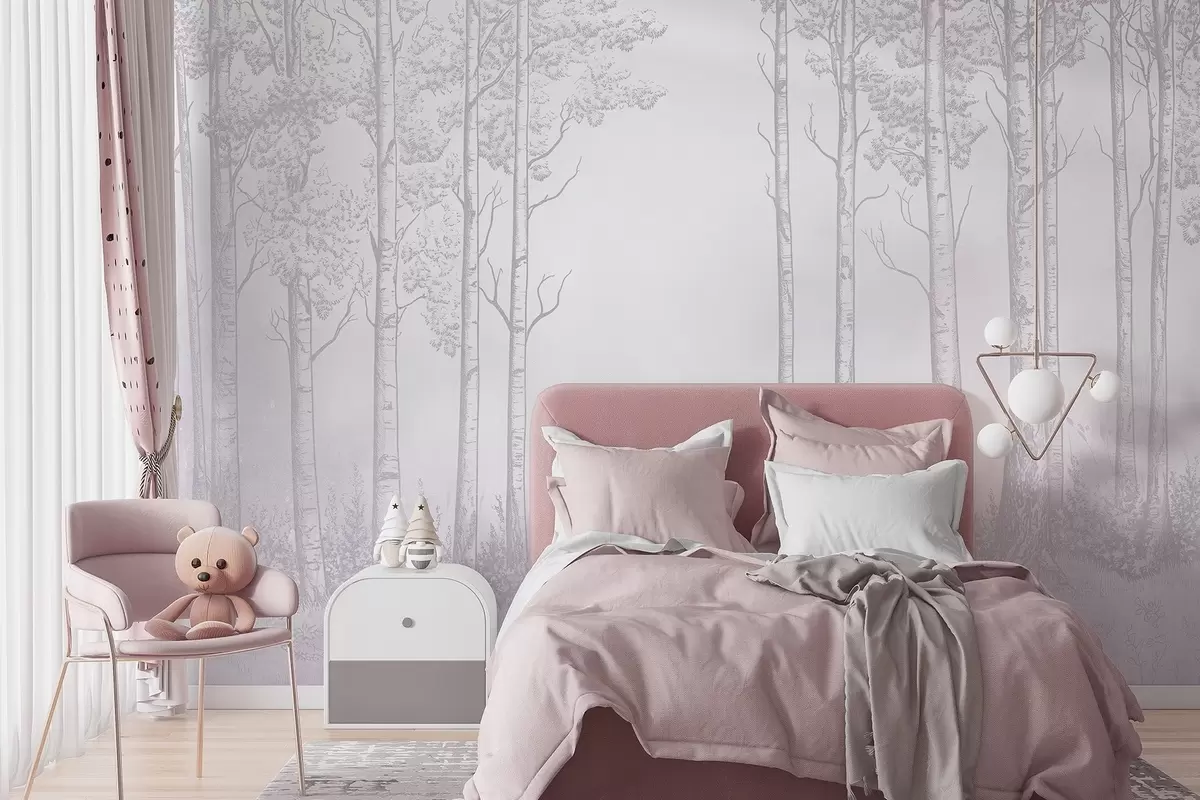 Fototapety Les s brezami, minimalizmus, príroda, ružová paleta farieb Nr. w04009v2