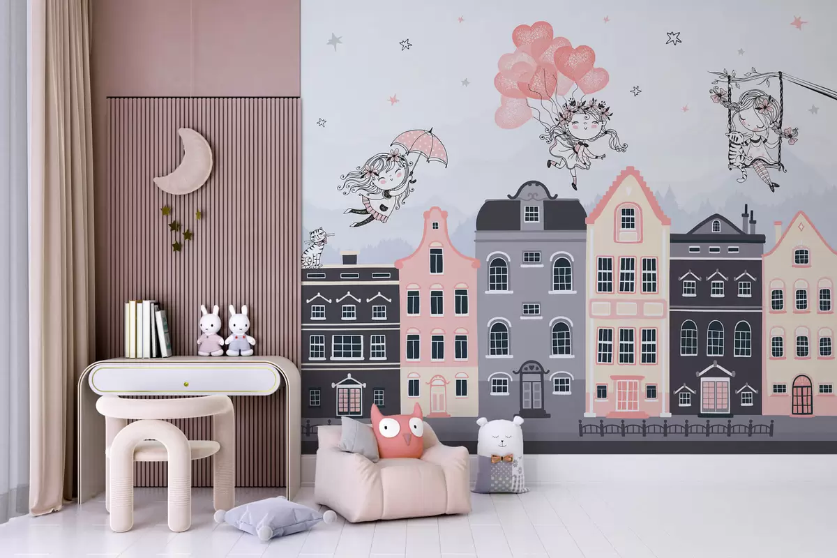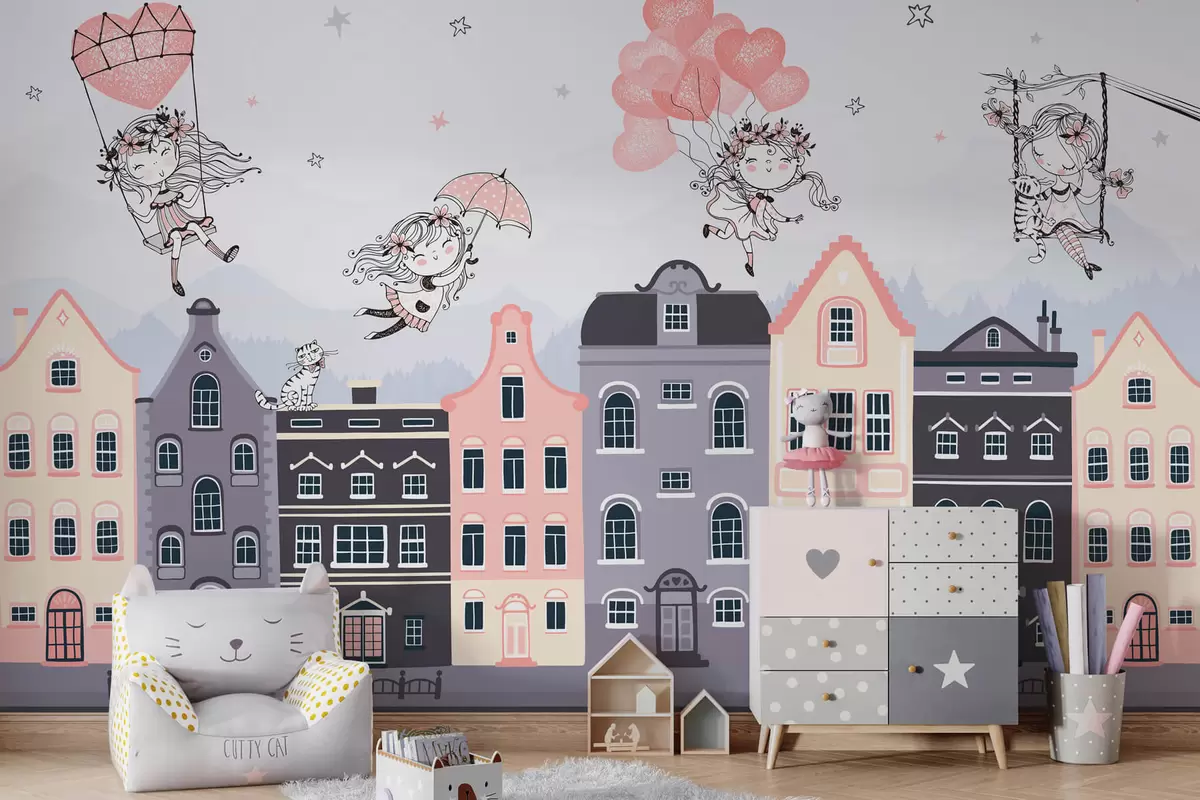Fototapety Krajina mesta s roztomilými dievčatami Nr. w04014