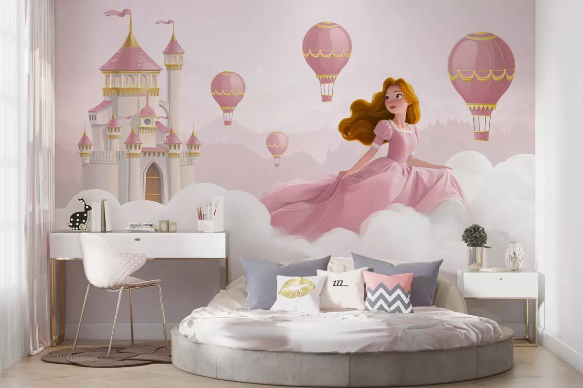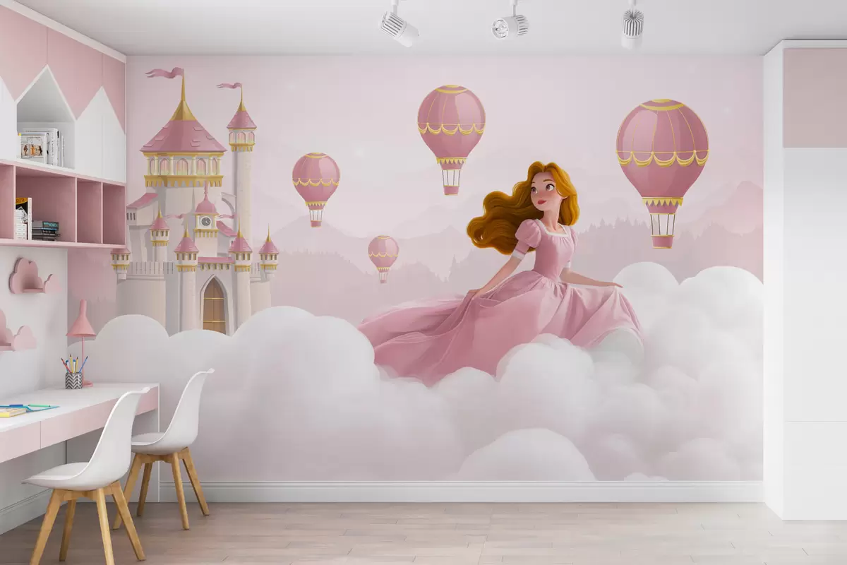 Fototapety Princezná medzi mrakmi na pozadí krajiny s hradom Nr. w04015v1