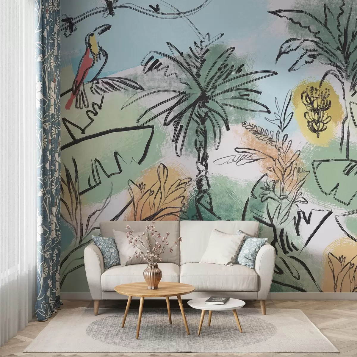 Fototapety Tropická potlač s papagájmi, sýte farby, tropy Nr. w04019