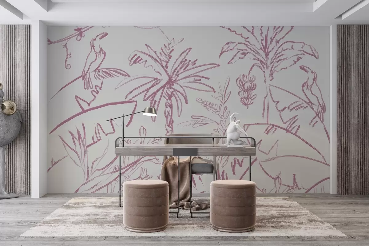 Fototapety Tropické línie v ružovej farbe, tropické rastliny, banány Nr. w04020v2