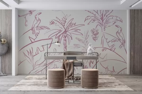 Fototapety Tropické línie v ružovej farbe, tropické rastliny, banány Nr. w04020v2