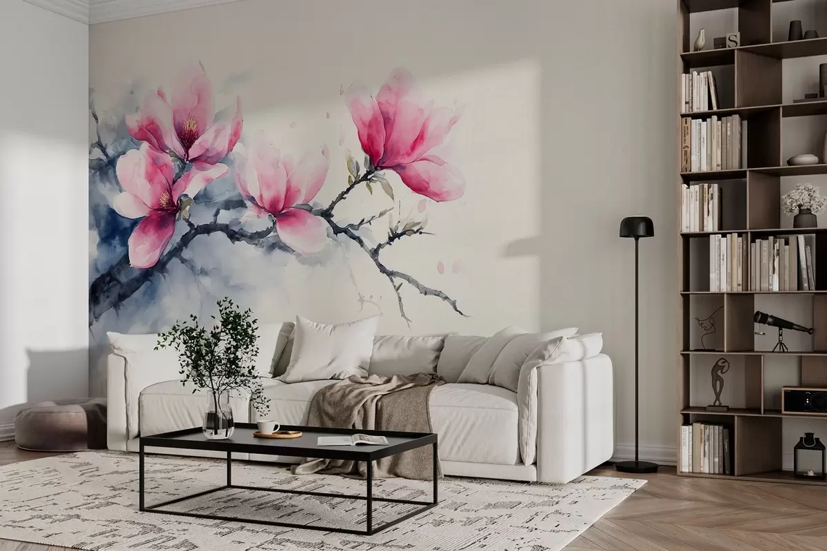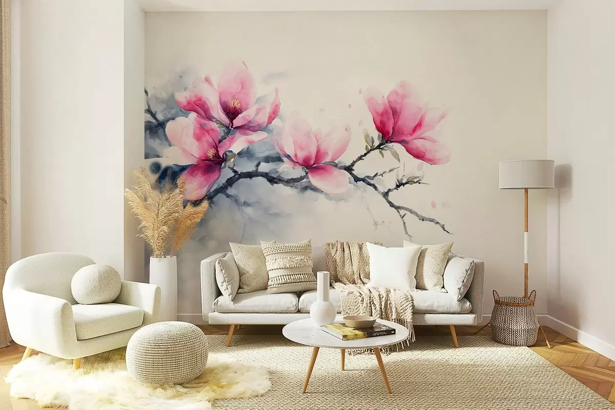 Fototapety kvitnúca vetvička ružovej magnólie na pozadí slonovej kosti Nr. w04027