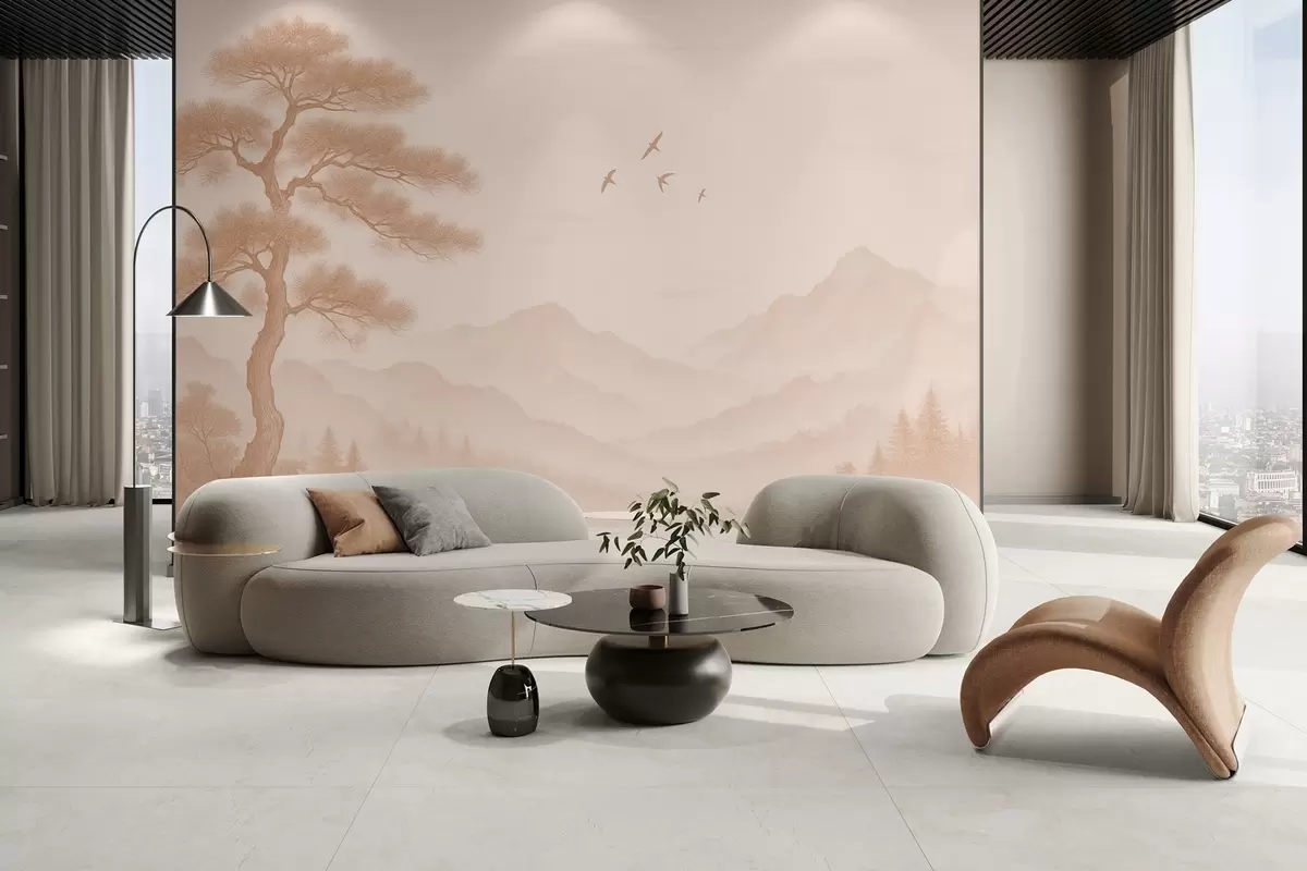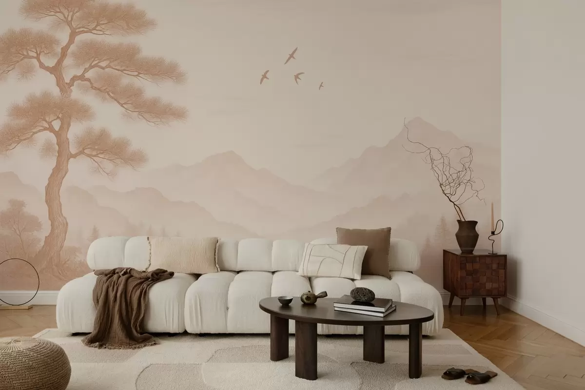 Fototapety panoráma kopcov s veľkým stromom v moka odtieňoch Nr. w04033v1