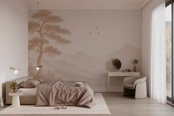 Fototapety panoráma kopcov s veľkým stromom v moka odtieňoch Nr. w04033v1