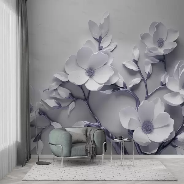 Fototapety Rozmerný kvetinový vzor v jemných bielych a fialovo-sivých tónoch Nr. w04039v1