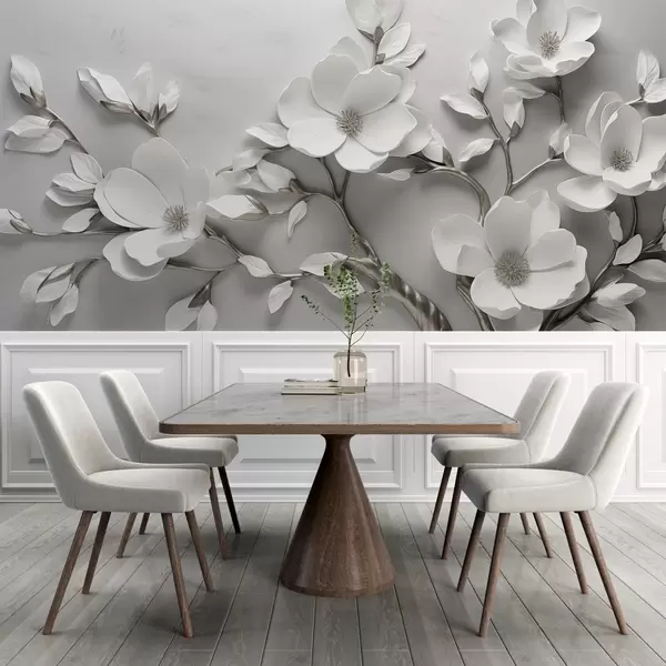 Fototapety Rozmerná kvetinová vetvička v čistej bielej farbe a neutrálnych tónoch Nr. w04039v2