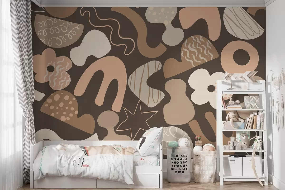 Fototapety Geometrické postavy s čmáranicami kresba, mladistvý, tmavé béžové pozadie Nr. w04068v1