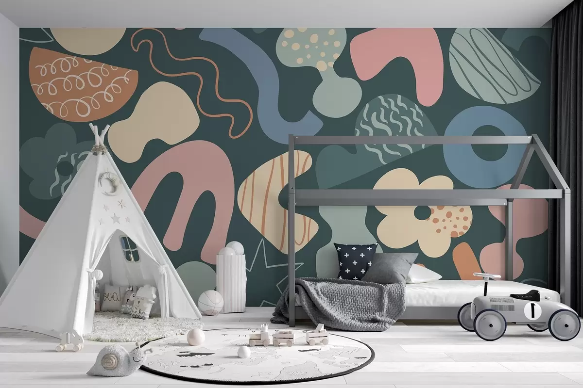 Fototapety Geometrické postavy s čmáranicami kresba, mladistvý, tmavozelené pozadie Nr. w04068v3