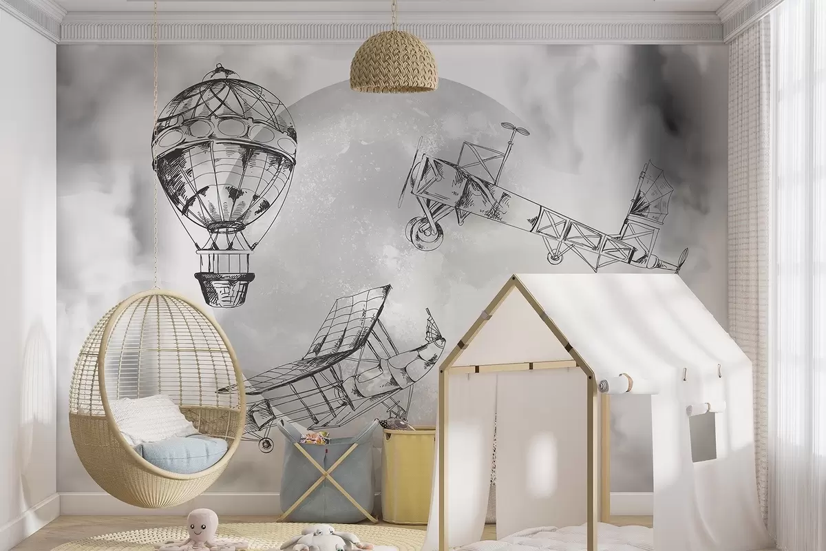 Fototapety Retro lietadlá na pozadí mesiaca a oblakov Nr. w04085