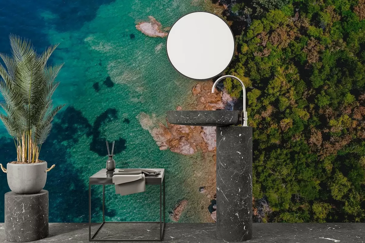 Fototapety Španielsko morské pobrežie s akvamarínom, borovicový les, letecké fotografie Nr. w04099