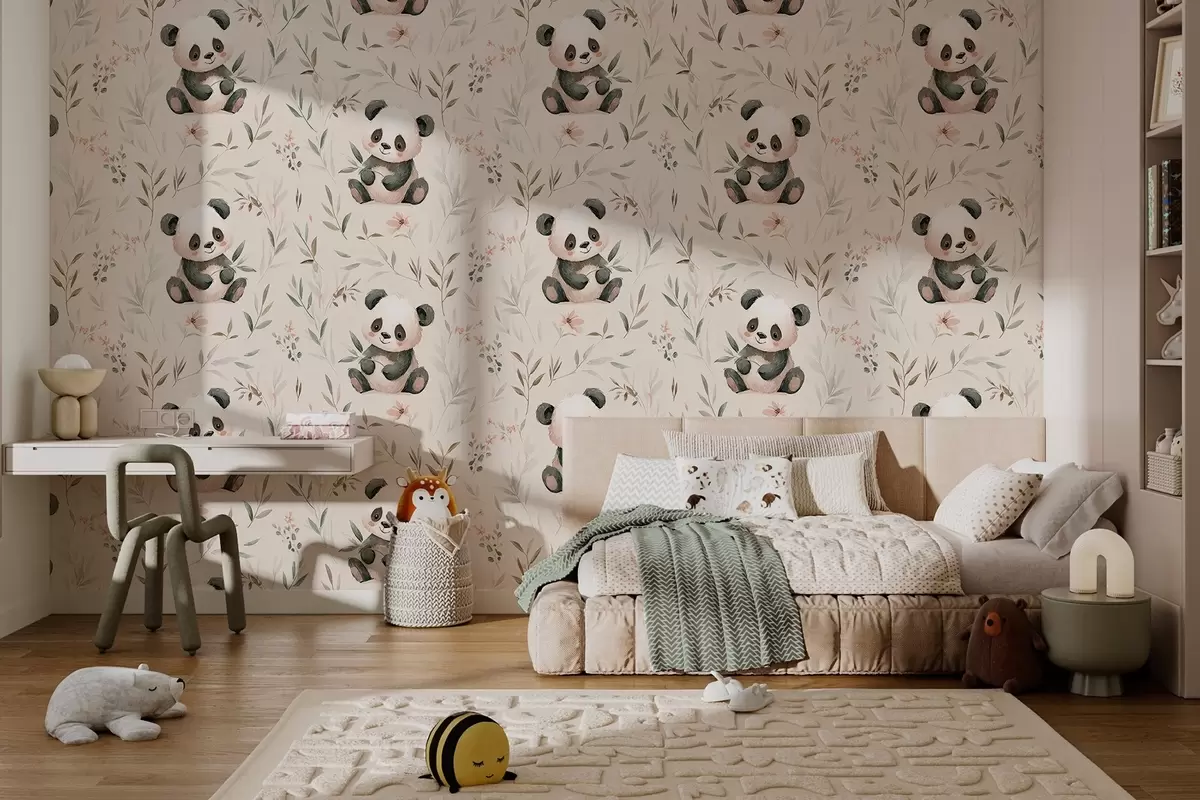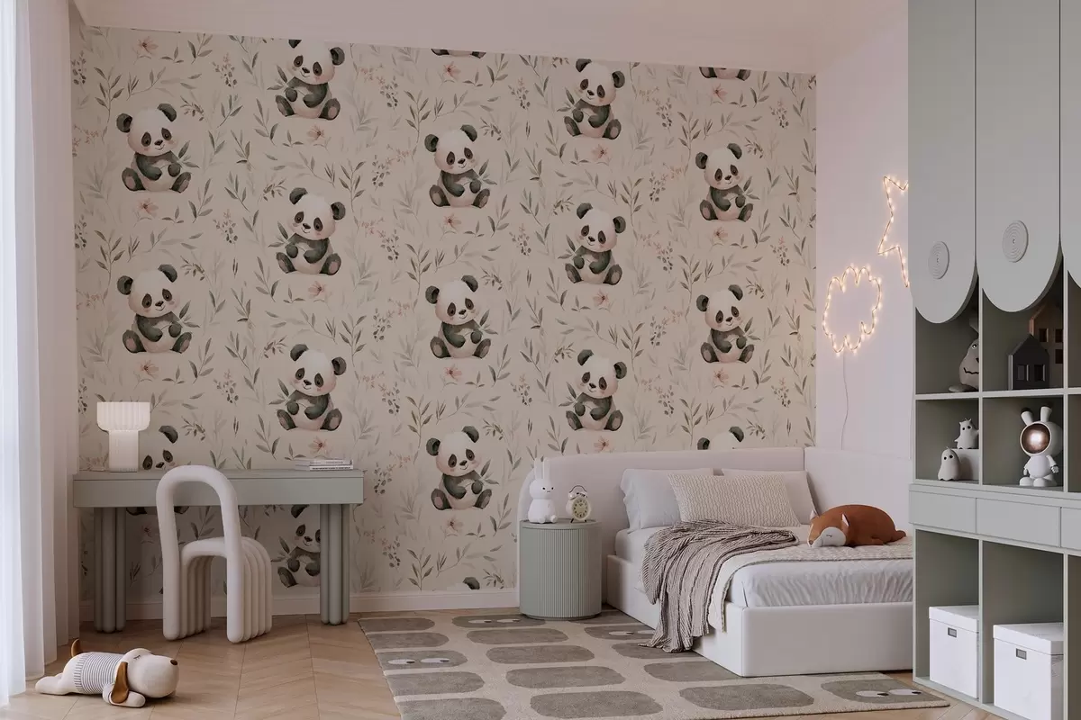 Fototapety roztomilé pandy v detskom štýle medzi rastlinami Nr. w04170