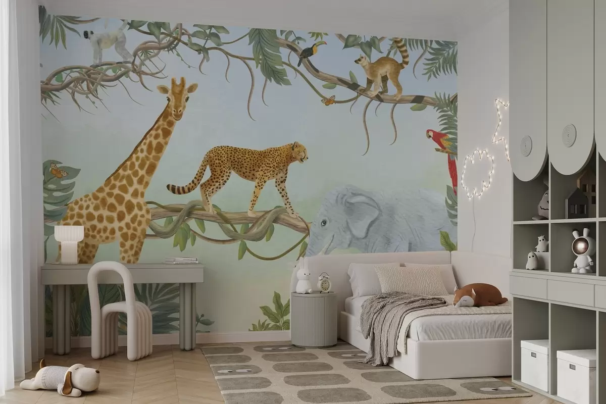 Fototapety Ilustrácia džungle so žirafou, gepardom a slonom Nr. w04194