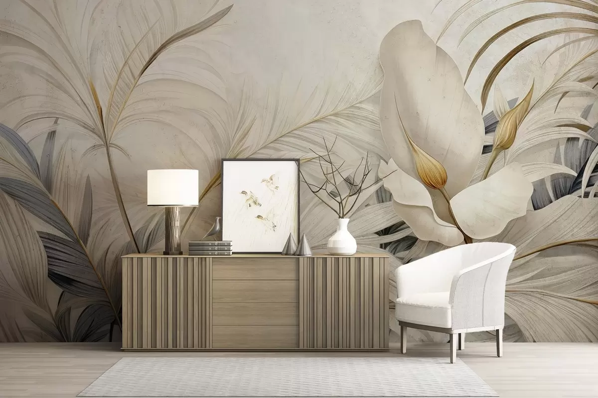 Fototapety Tropické rastliny na betónovej stene Nr. w04249