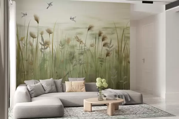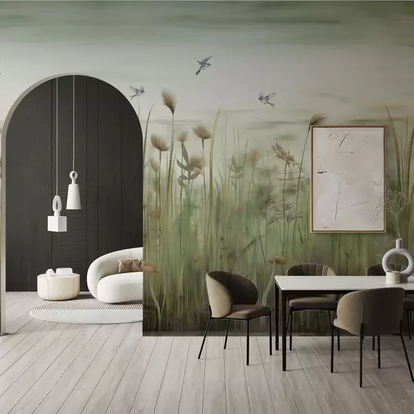 Fototapety Trávnatá krajina s lastovičkami na pozadí jemnej oblohy Nr. w04258v1