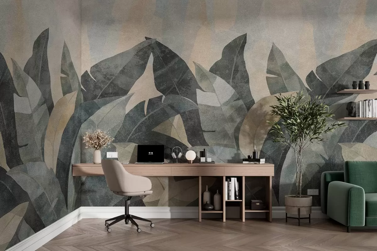 Fototapety textúrované banánové listy v prírodných odtieňoch béžovej, zelenej a sivej farby Nr. w04285