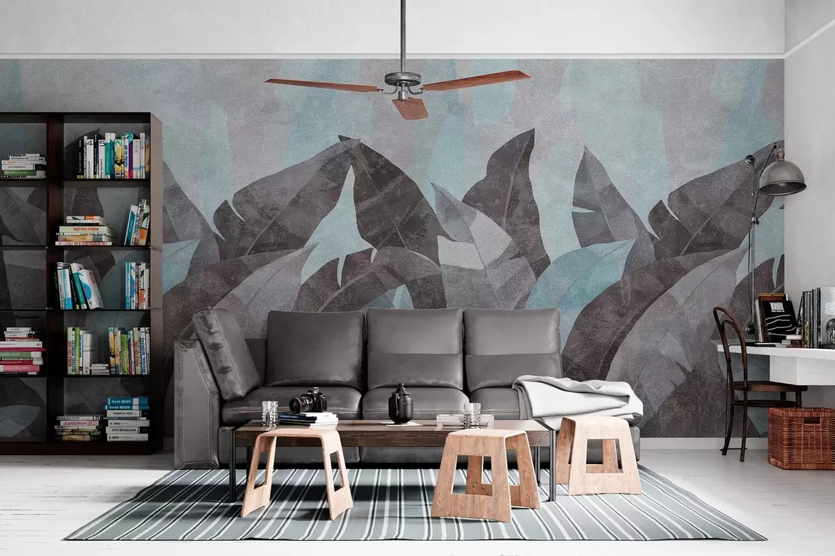 Fototapety textúrované banánové listy v modrých a sivých odtieňoch w04285v2