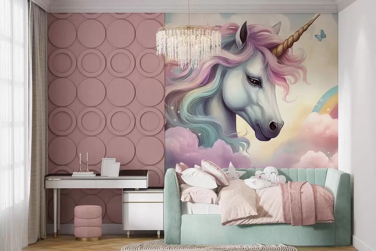 Fototapety Jednorožec na zamračenej oblohe s dúhou Nr. w04372