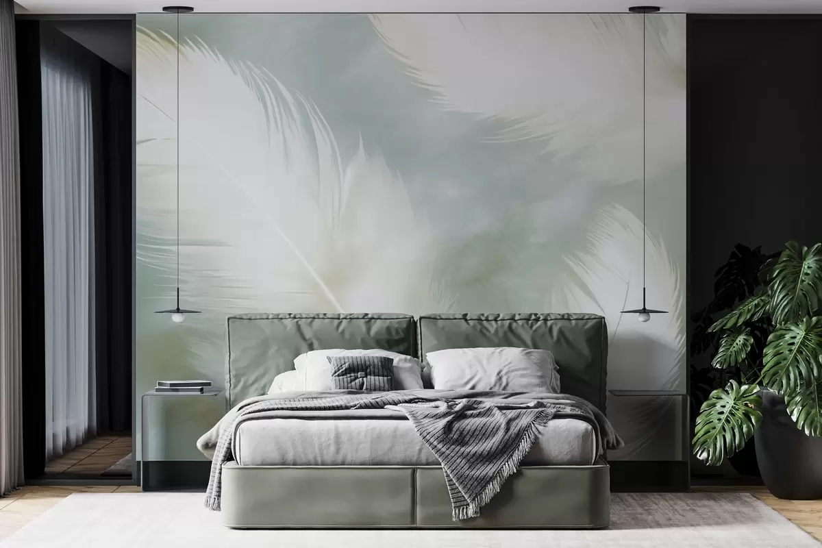 Fototapety Jemné biele pierka na jemnom mätovom pozadí Nr. w04399