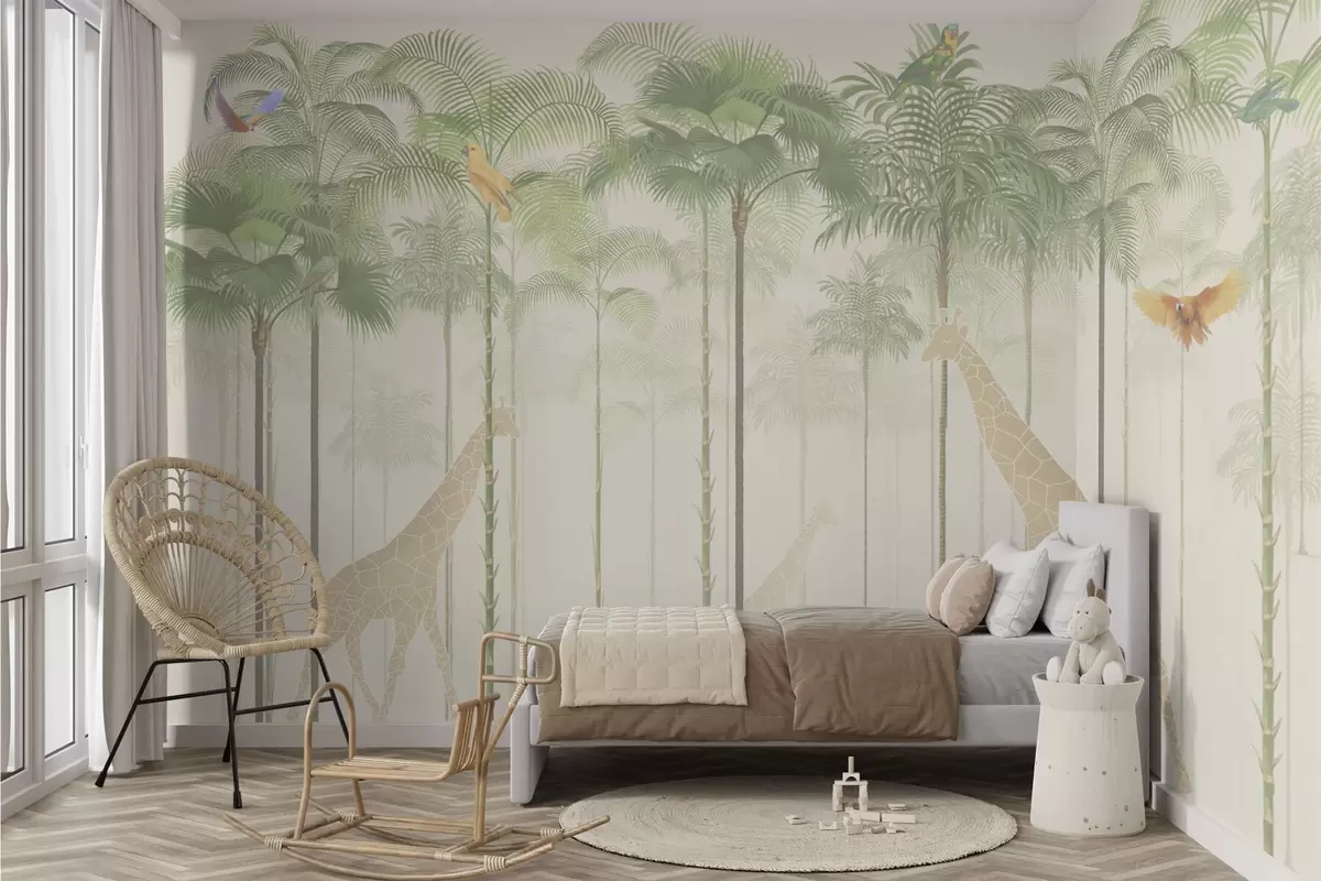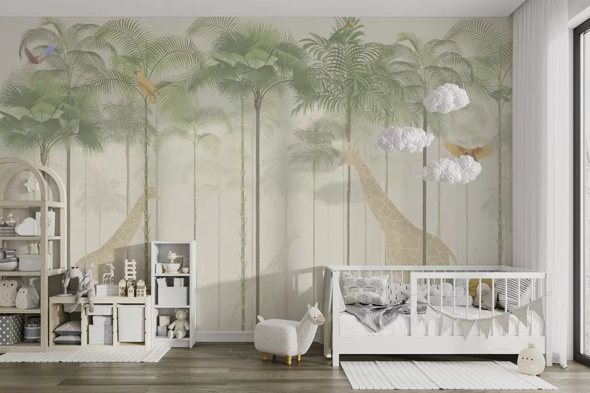 Fototapety Žirafy a tropické vtáky medzi vysokými palmami Nr. w04400