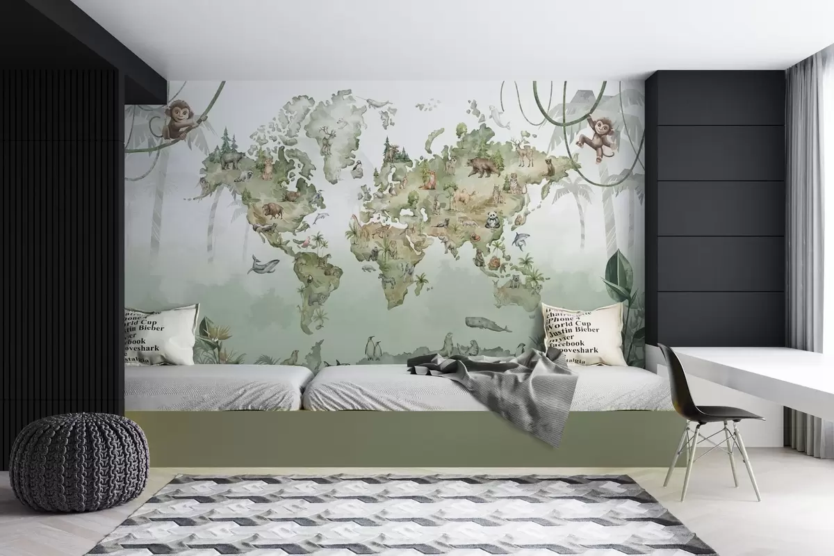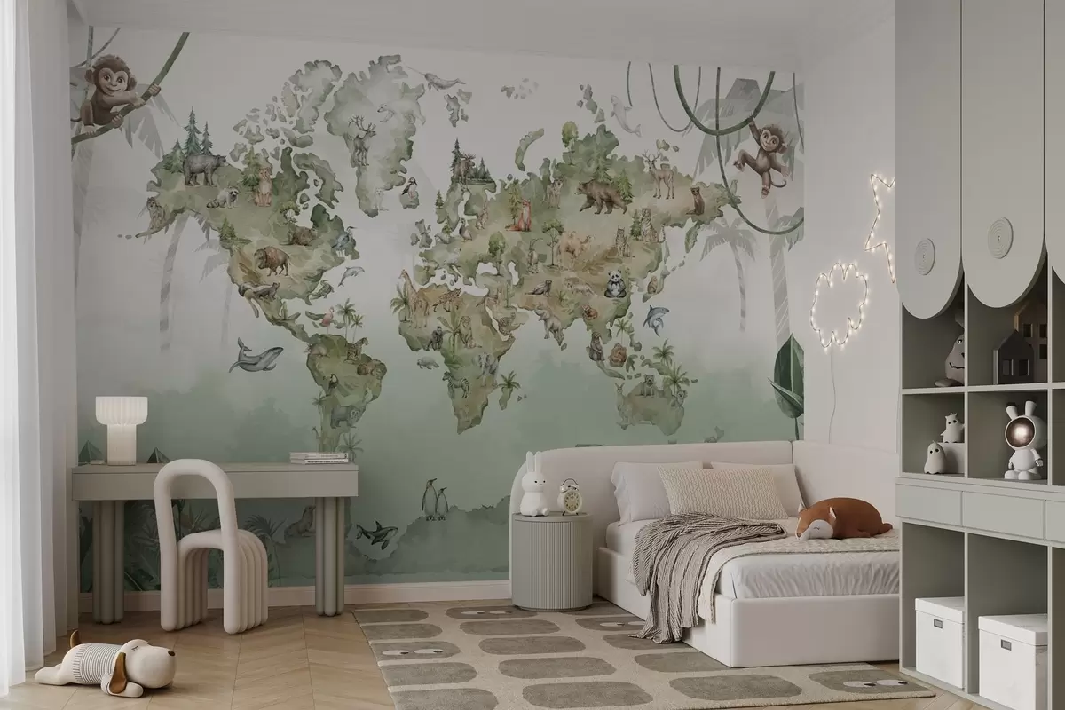 Fototapety Akvarelová mapa sveta so zvieratami Nr. w04418