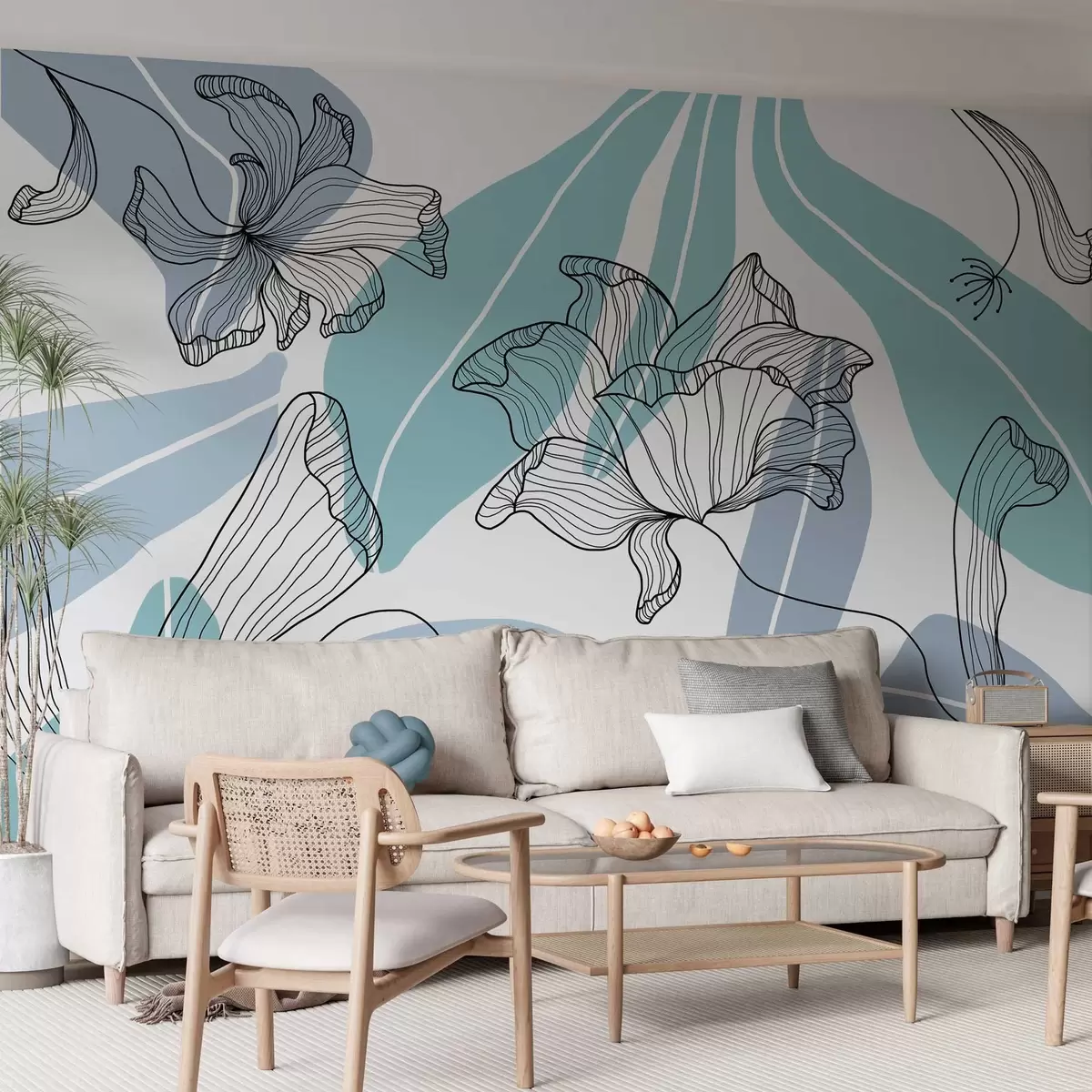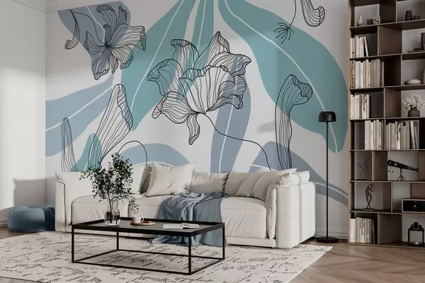 Fototapety abstraktné listy a kvety v modrých odtieňoch Nr. w04499v2