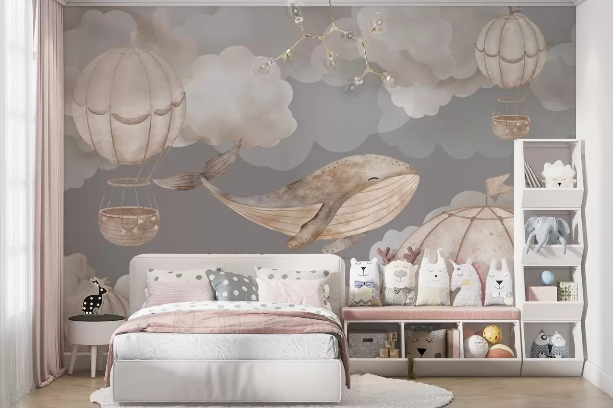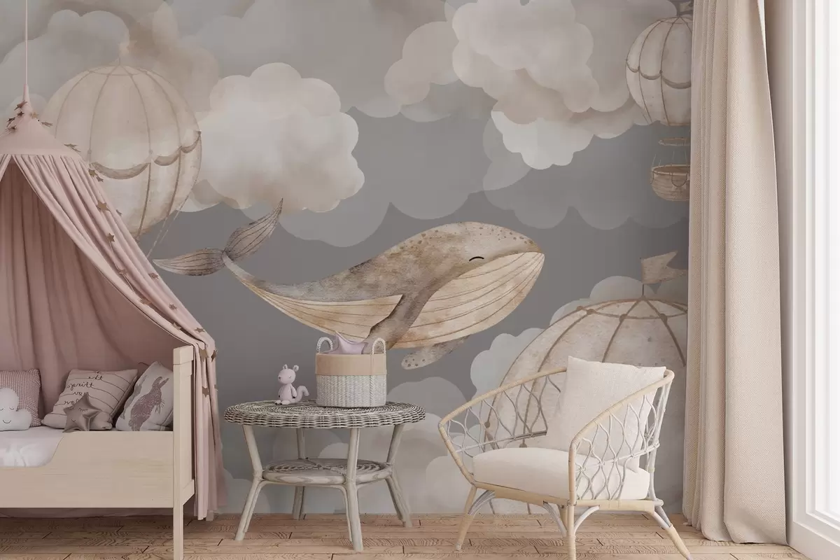 Fototapety Velryby a teplovzdušné balóny medzi mäkkými oblakmi Nr. w04522