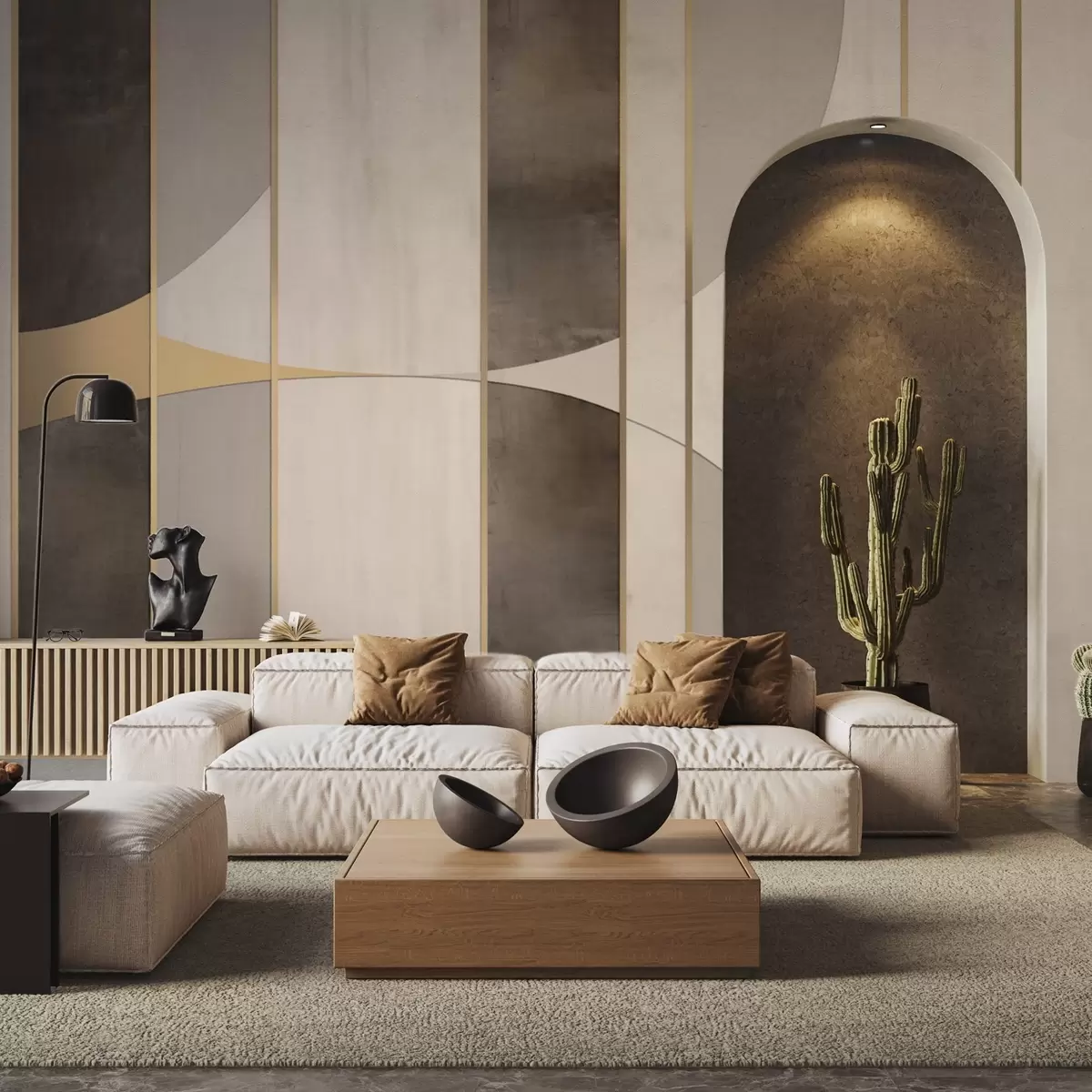 Fototapety Geometrické panely s oblúkmi a šampanskými akcentmi Nr. w04616