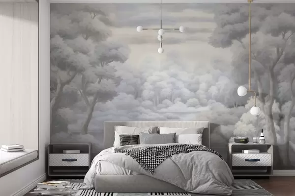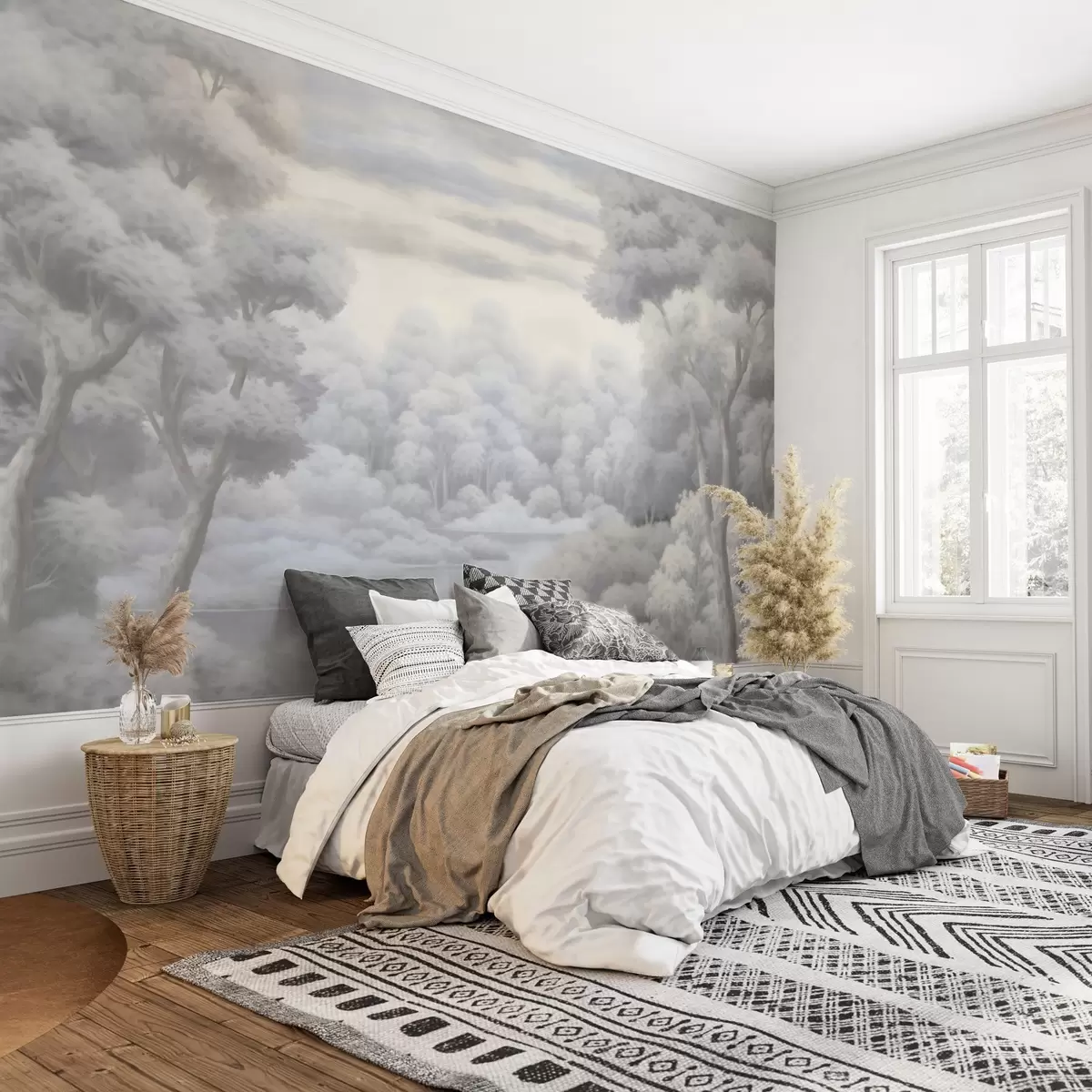 Fototapety Hmlistý les a jazero v jemných sivých odtieňoch Nr. w04617