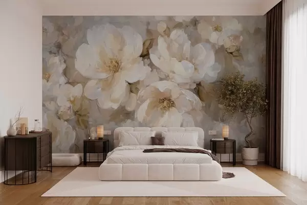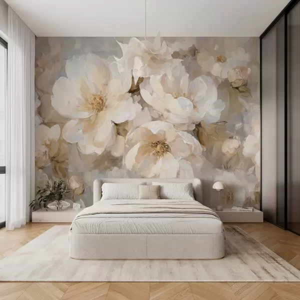 Fototapety veľké kvety v bielych a béžových odtieňoch v štýle olejomaľby Nr. w04633