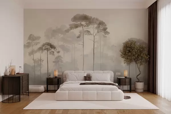 Fototapety ľahké siluety borovíc v akvarelovom štýle Nr. w04634