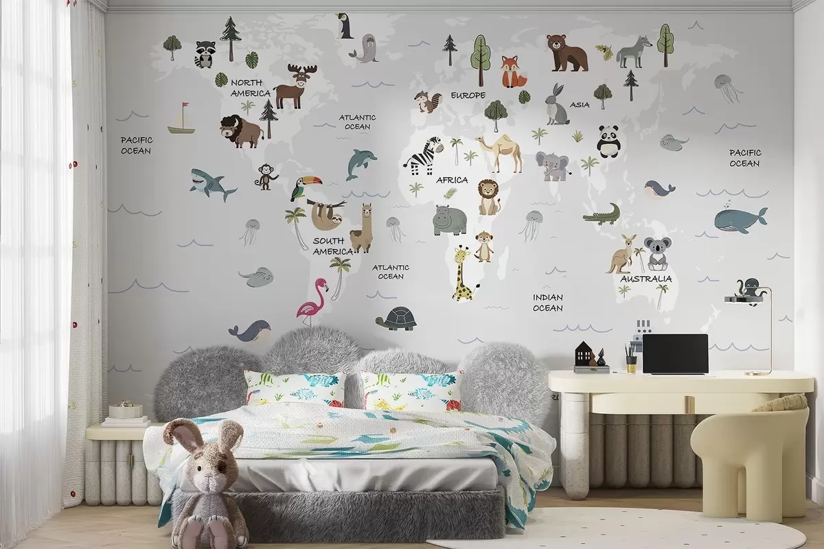 Fototapety Mapa sveta so zvieratami Nr. w04663