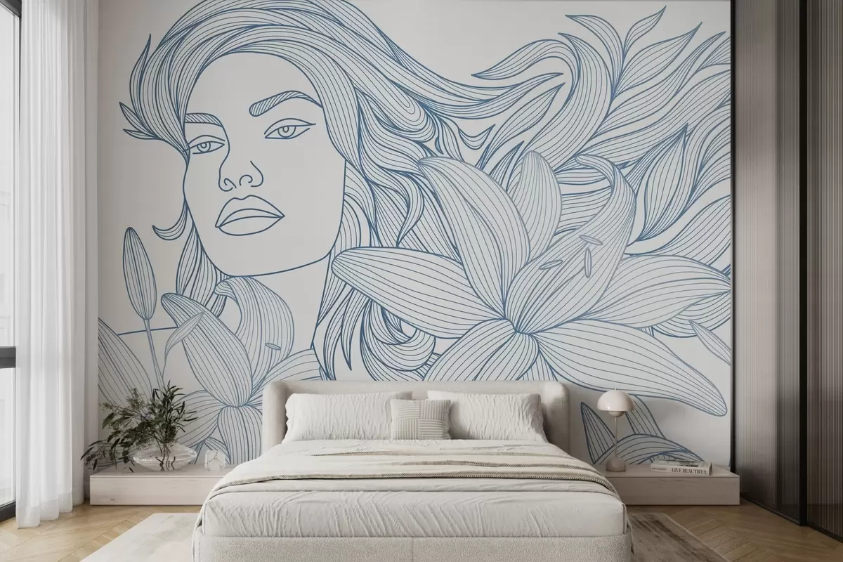 Fototapety Portrét dievčaťa v odtieňoch modrej farby ľaliových kvetov Nr. w04689v2