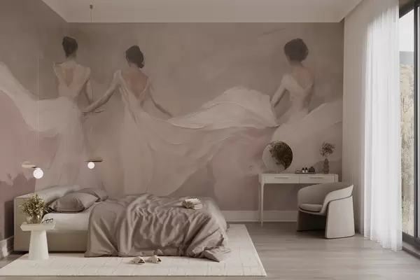 Fototapety Tri ženy v ružových šatách, splývavá látka, jemnosť Nr. w04709